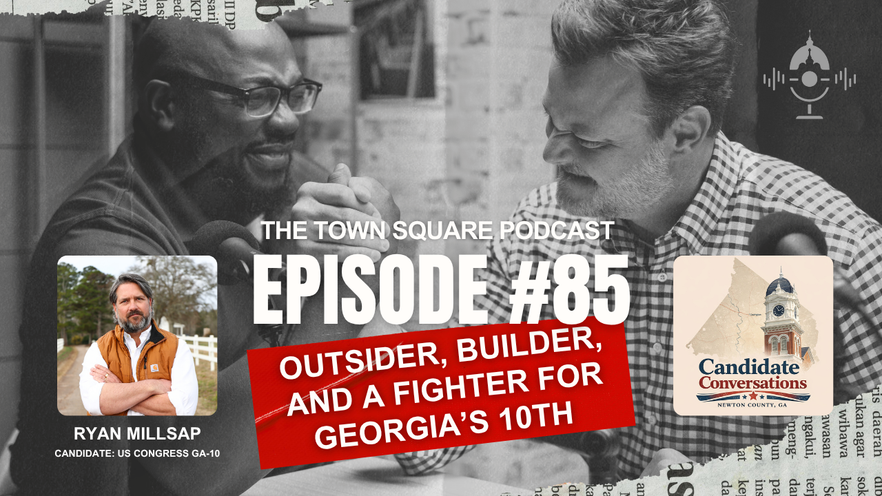 In Episode 85 of The Town Square Podcast, Trey Bailey and Gabriel Stovall continue their Candidate Conversations series with Ryan Millsap, Republican candidate for U.S. Congress in Georgia’s 10th District. The seat is currently held by Congressman Mike Collins, and with voters preparing for another important election cycle, this conversation was designed to help listeners better understand one of the candidates asking for their vote.